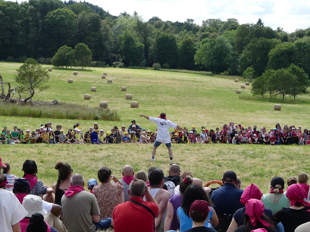 La journée s’est poursuivie par le spectacle Echoa de la Compagnie Arcosm devant le Château de Trévarez et s’est terminée avec la chanson Slam’po Focus chanté par les artistes et les enfants.