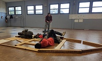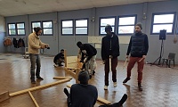 Du 20 au 24 janvier, Carine Gualdaroni, (marionnettiste, danseuse et metteure en scène) et Jérémie Bernard (musicien, compositeur, et co-créateur) de la Cie juste après étaient en résidence artistique de territoire pour leur nouvelle création : Terre Étrangère / Nos migrations à Pleyber-Christ avec les jeunes exilés de l’École alternative des Monts d’Arrée.