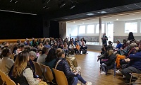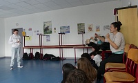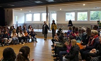 La metteure en scène Marie Blondel et la comédienne Hélène Cerles ont mené des ateliers théâtre avec les 4e du collège Roz Avel de Guerlesquin et les élèves de CM2 de l’école Marie-Thérèse Prigent à Plougasnou autour de l’imaginaire et du théâtre d’objet.
