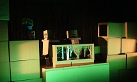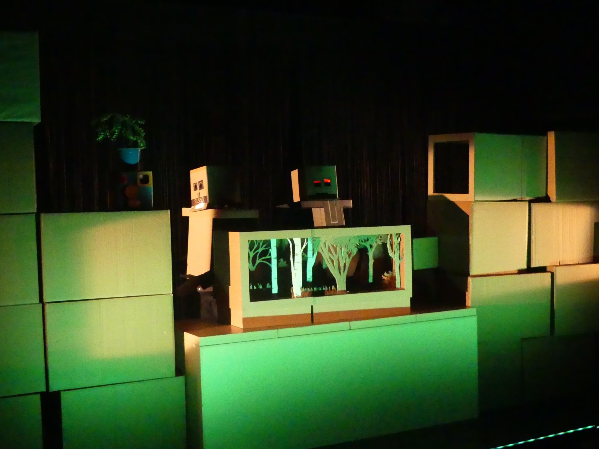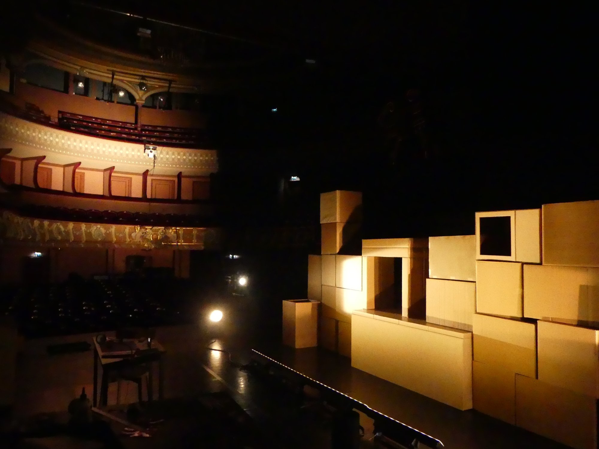 En après-midi, l’équipe était au plateau pour des répétitions, construction de décors et enregistrement du texte du spectacle écrit par Valérian Guillaume.