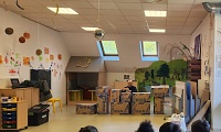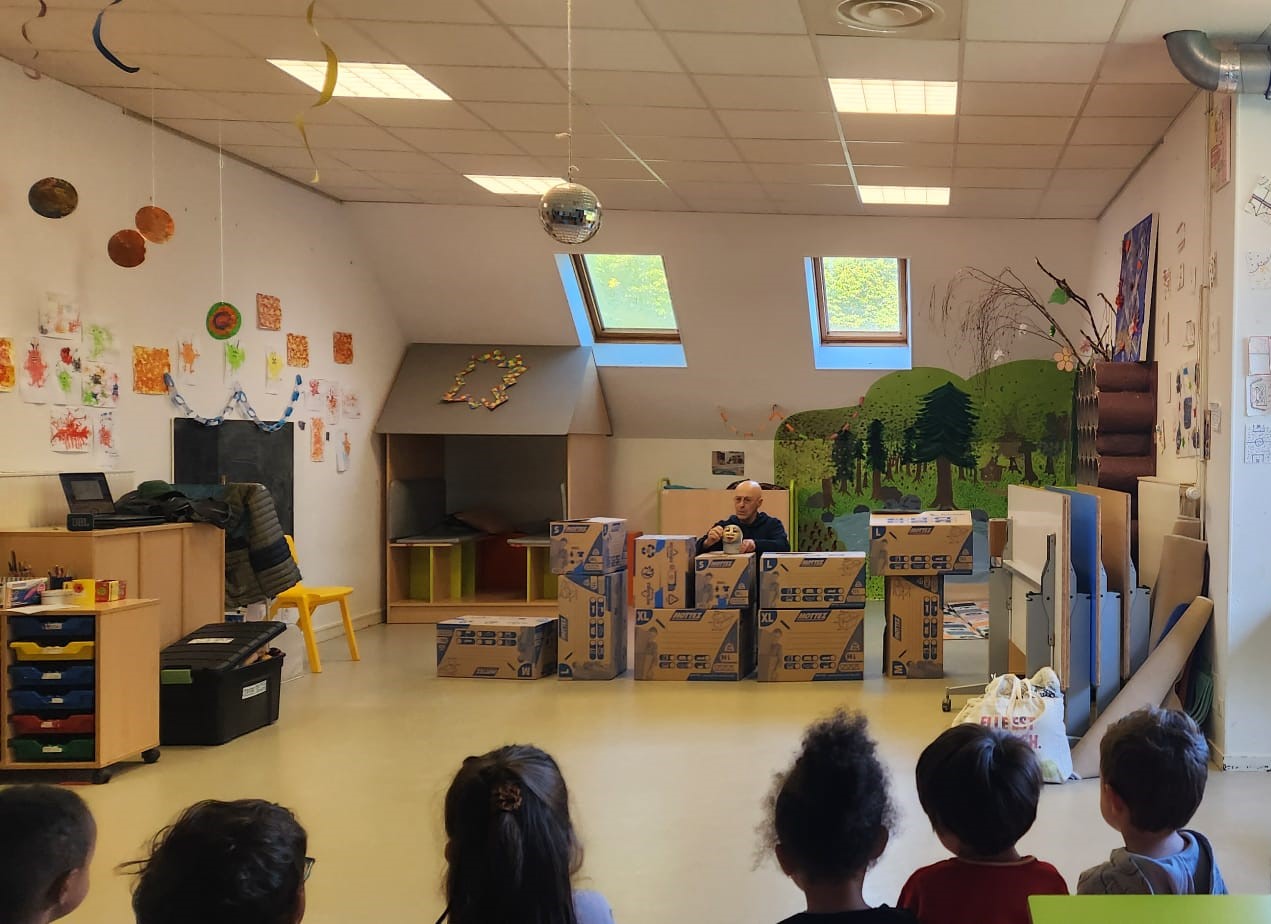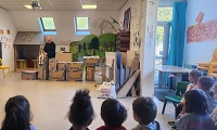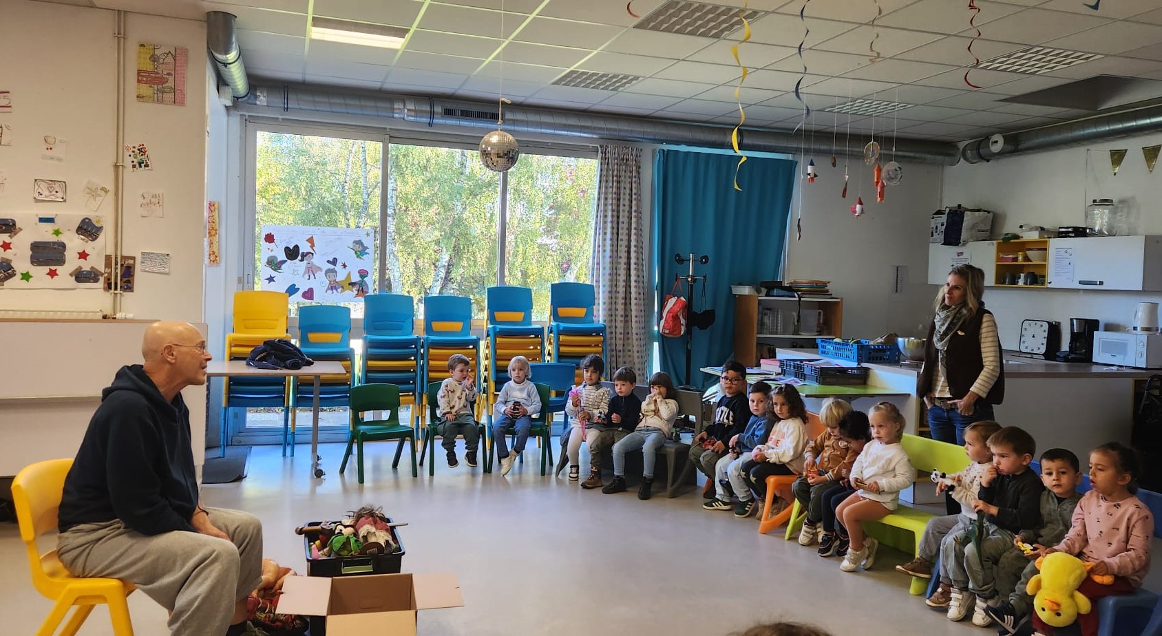 Durant les matinées, le metteur en scène-marionnettiste Laurent Fraunié a rencontré des classes de maternelles des écoles de Notre-Dame de Lourdes à Morlaix, Le Gouelou à St-Martin-des-Champs et Yvonne Folgalvez à Locquirec. Découverte de la marionnette, entrée dans le spectacle et jeu autour de leur doudou : chaque élève devait rapporte son doudou.