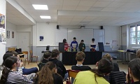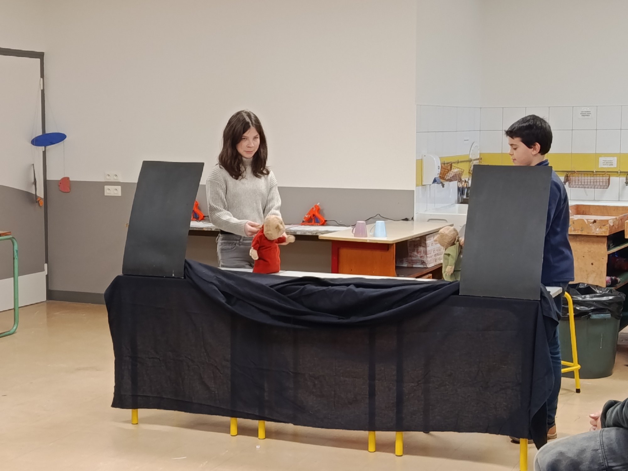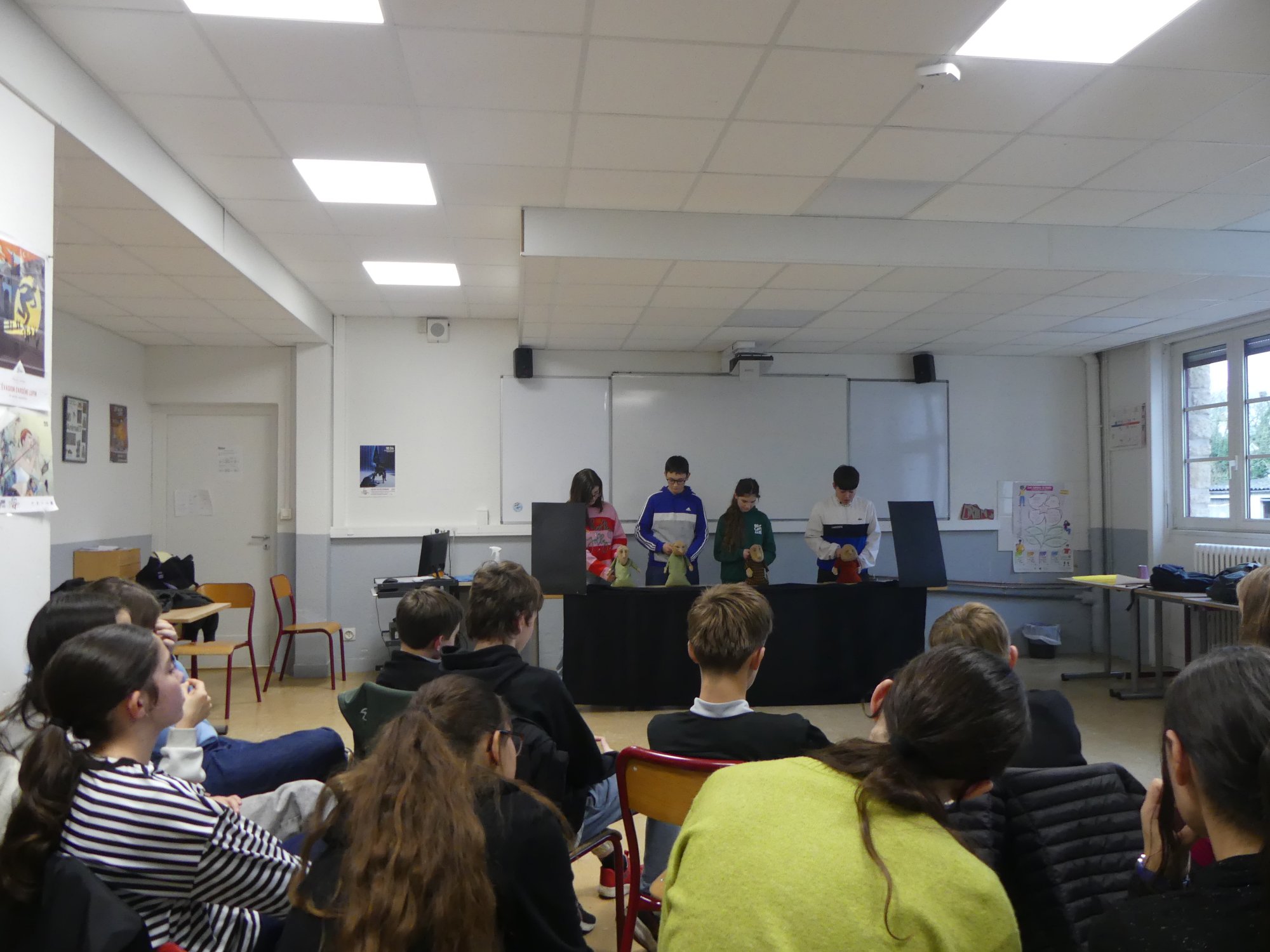 Dans le cadre de la deuxième année de jumelage du collège Roz Avel avec le Théâtre du Pays de Morlaix, la marionnettiste et médiatrice de la Compagnie Tro-heol, Noémie Géron, a mené des ateliers de sensibilisation à la manipulation de marionnettes auprès des 3 classes de 4è du Collège.