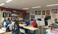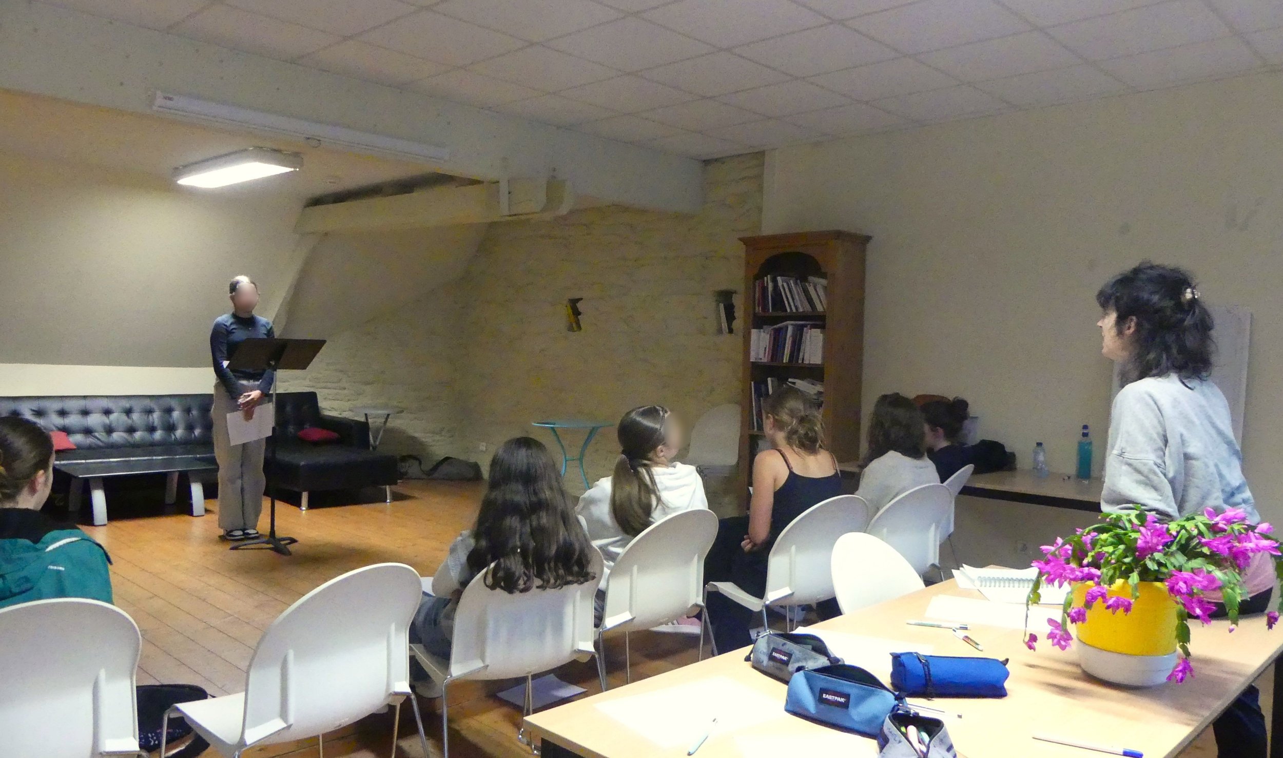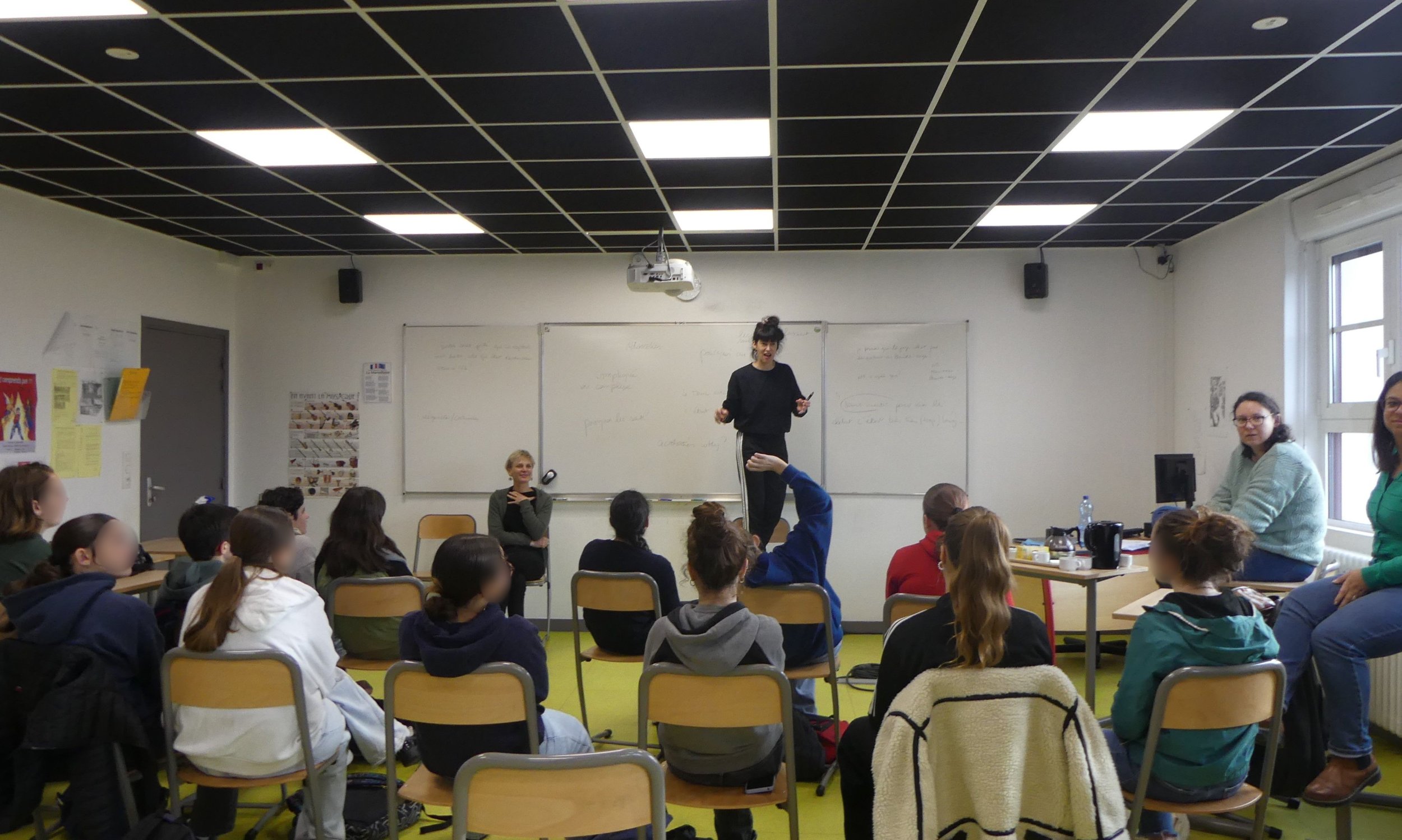 • Lisa Lacombe et Morgane Le Rest, autrices du texte ont mené des ateliers d’écriture, de jeu et ont fait un retour sur le spectacle avec le groupe d’Ambassadrices et d’Ambassadeurs du Collège Roz Avel de Guerlesquin.