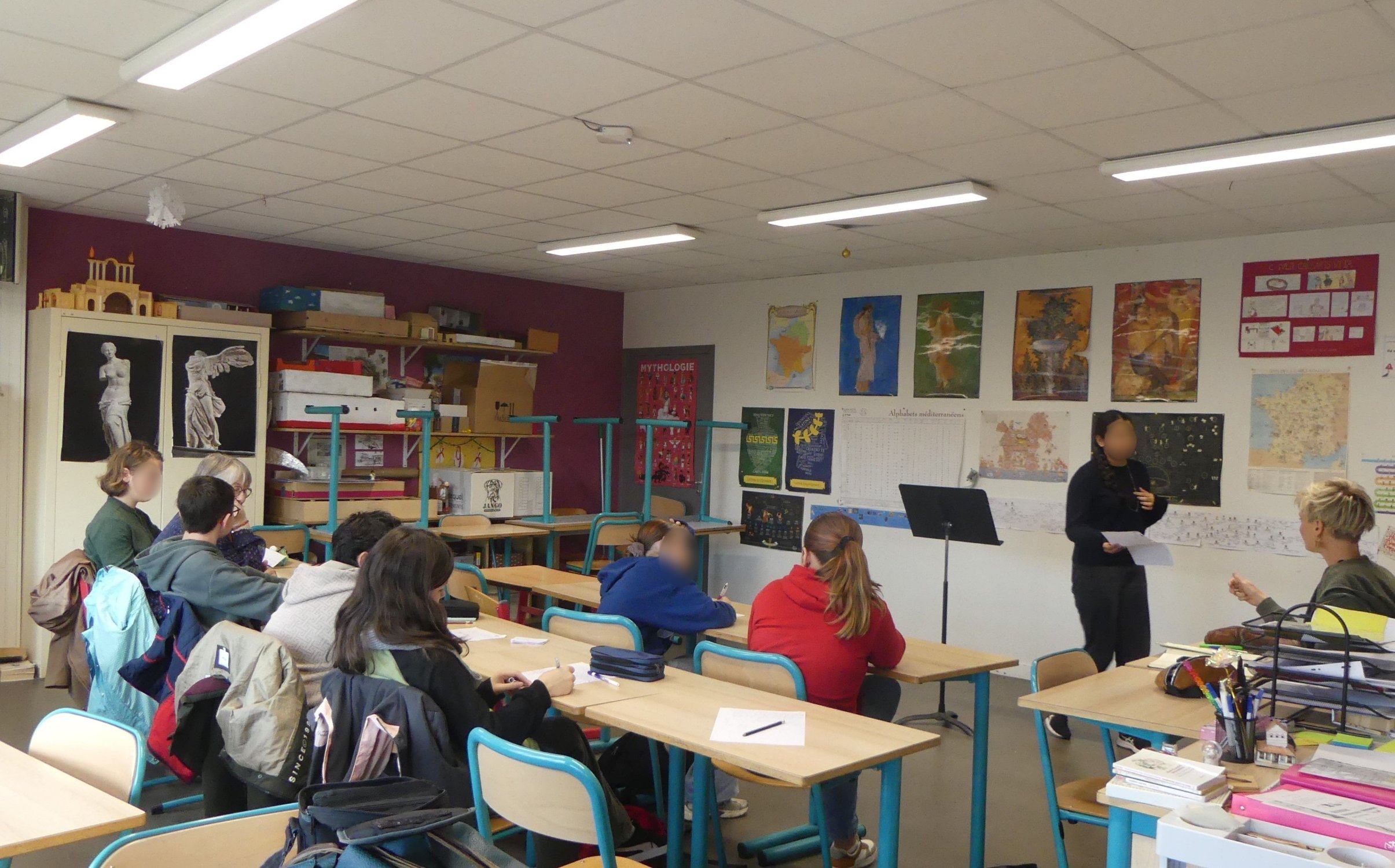 En demi-groupe, elles sont d’abord revenues sur le conte de Blanche-Neige et les 7 nains, puis leur ont demandé de choisir l’un des personnages de l’histoire, d’écrire un monologue puis de le lire devant les autres élèves. Elles sont ensuite travaillé autour de la mise en scène d’un procès, de poser des questions comme le fait la magistrate dans le spectacle et d’y répondre, de se défendre comme le font les nains. Les ateliers se sont déroulés au théâtre puis au collège.