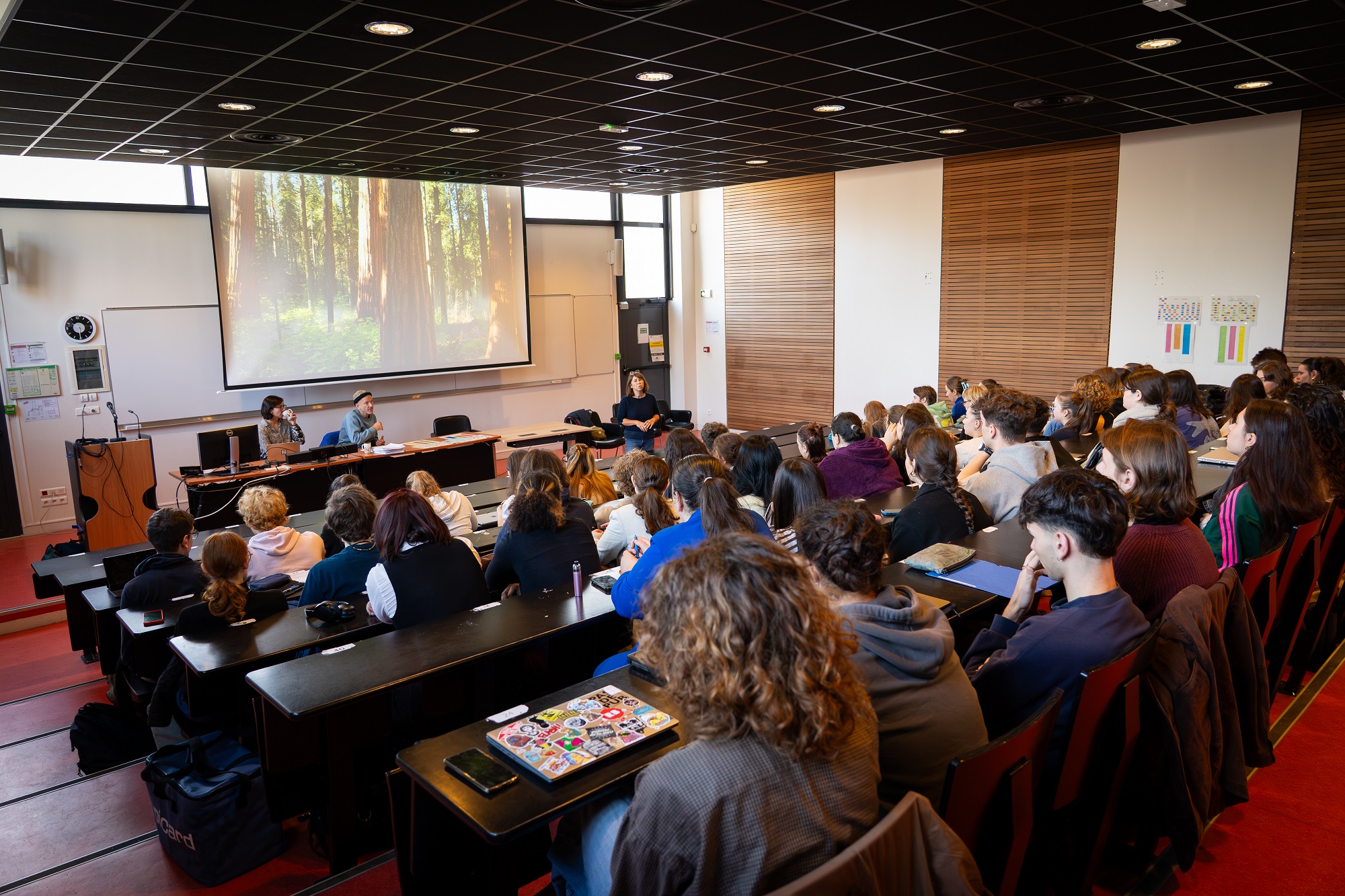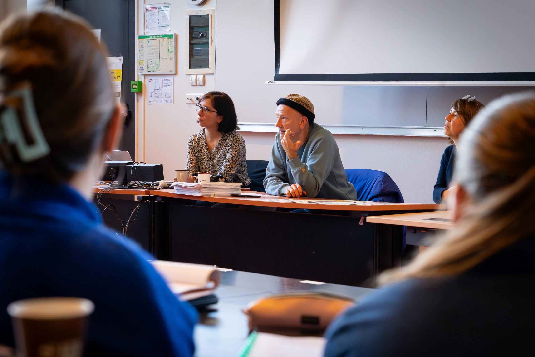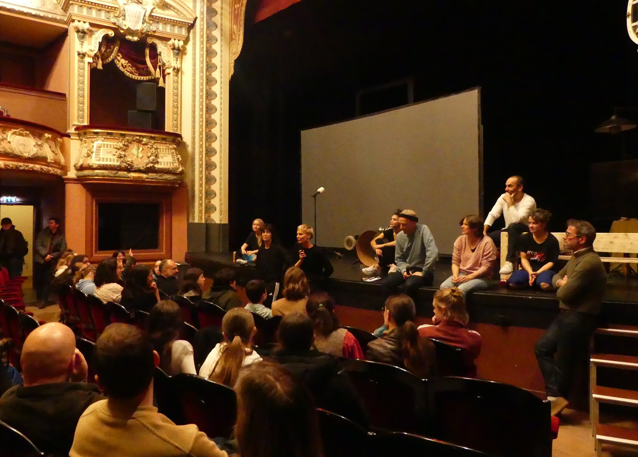 • Mathilde Pakette, administratrice de production de la compagnie et Charlie Windelschmidt, metteur en scène du spectacle ont rencontré les étudiants de l’IUT GACO de Morlaix. Ils ont donné quelques clés sur les intentions, la mise en scène et l’histoire avant de voir le spectacle. Mathilde Pakette a abordé l’aspect plus administratif comme le montage de production d’un spectacle.