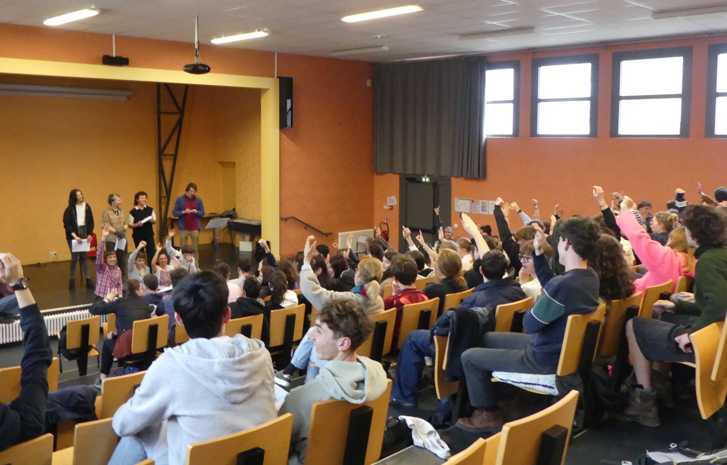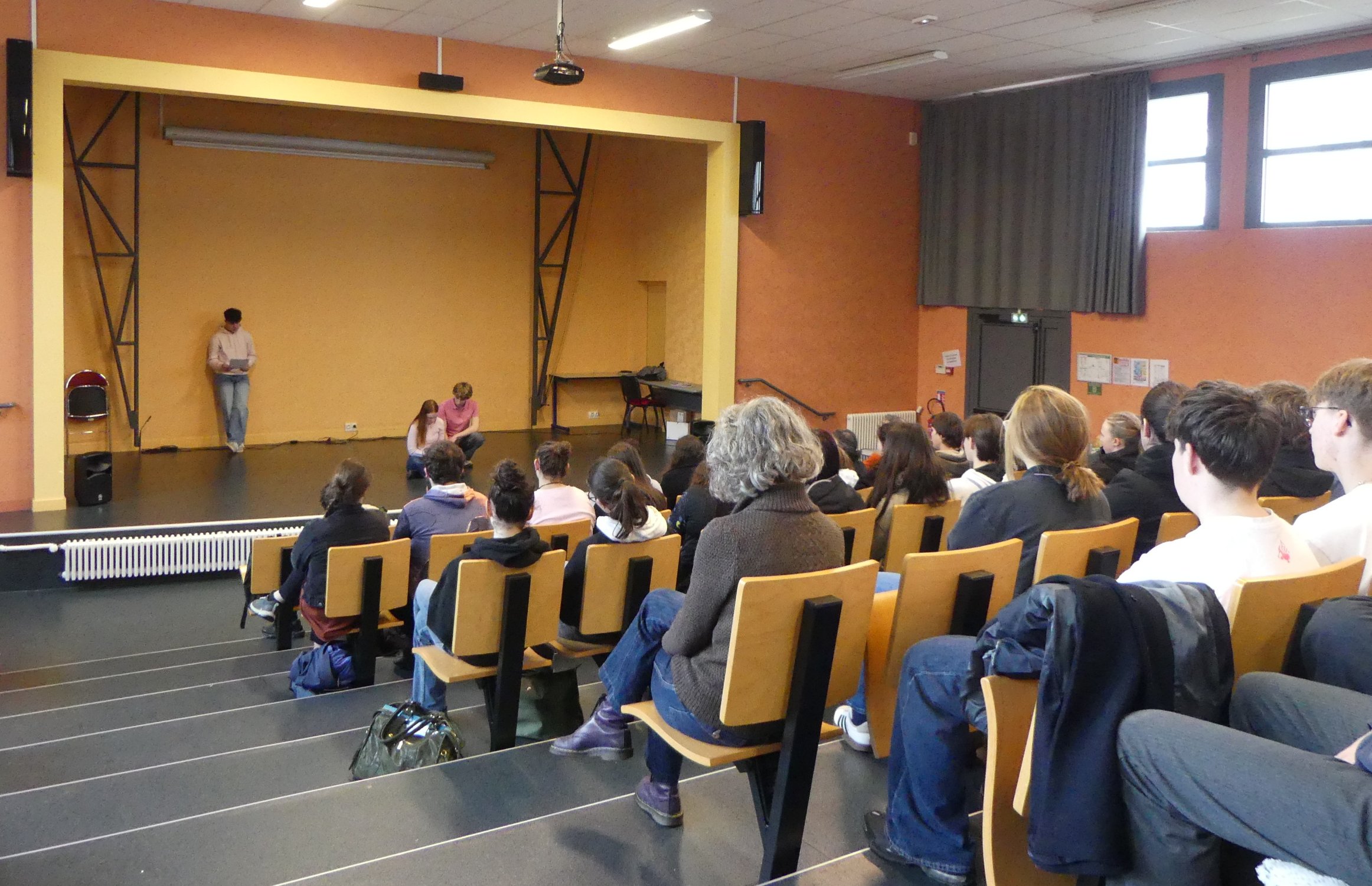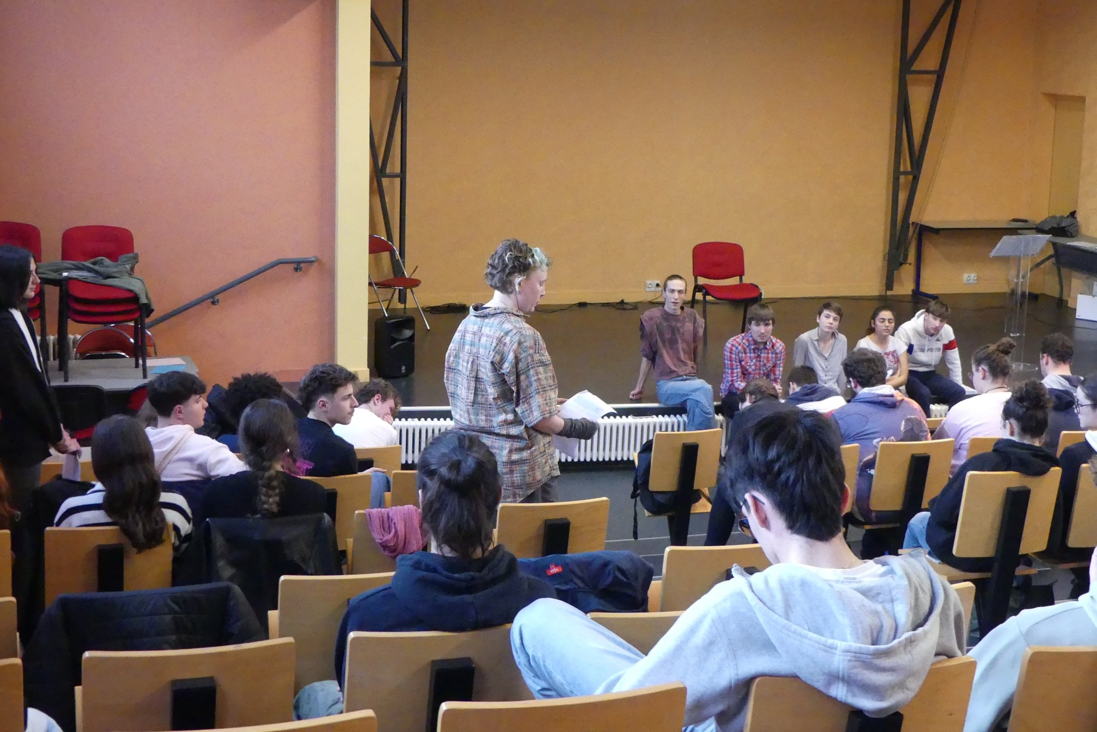 Les textes ont été mis en scène et en voix lors d’une restitution devant les classes de BTS, Secondes et Premières du lycée. Ils ont également assisté à une répétition du spectacle Après nous, les ruines au Théâtre.