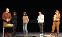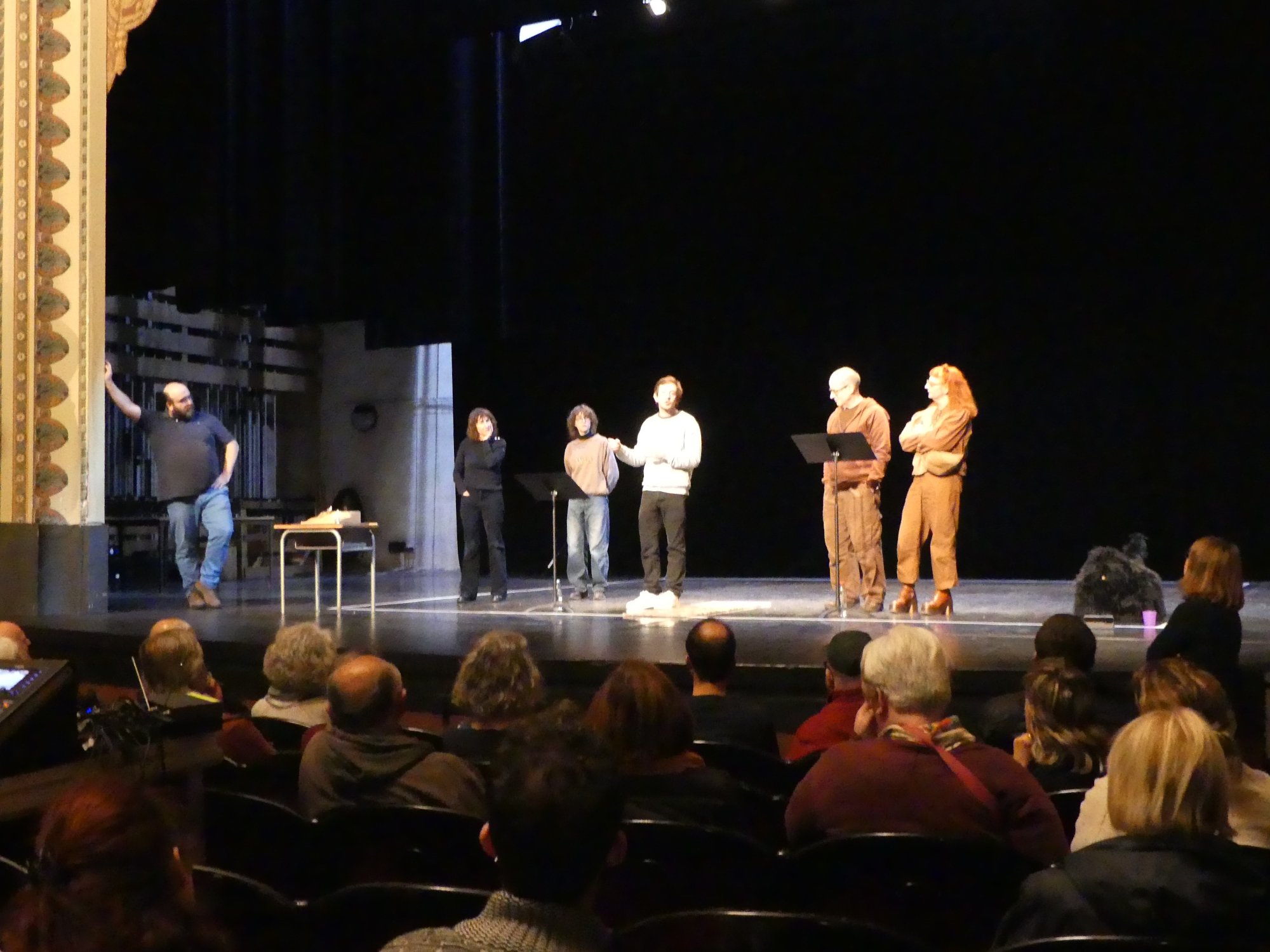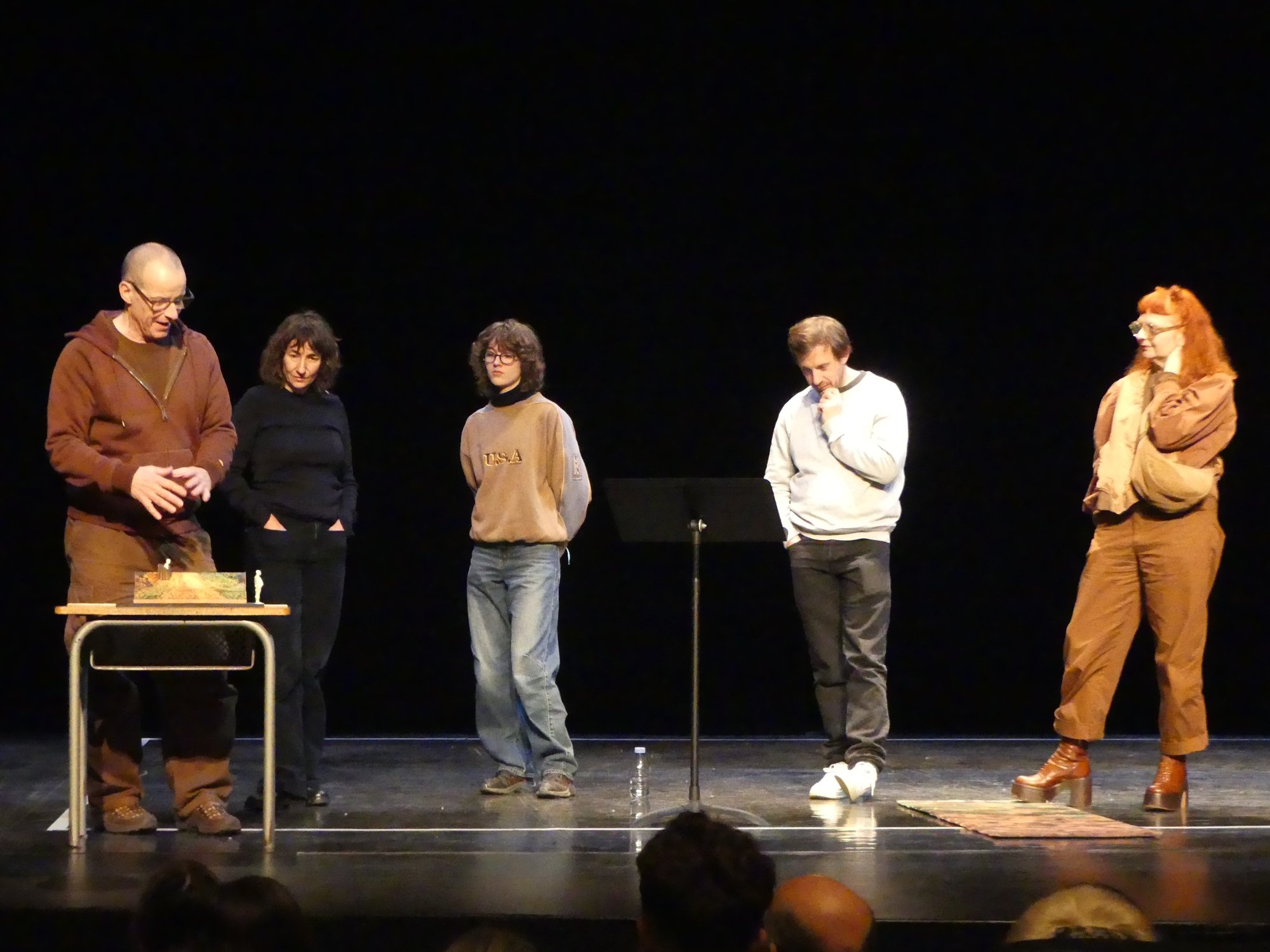 Ils ont été rejoints par une partie de l’équipe de création, Marion Aubert (autrice), Liléa Le Borgne (assistante à la mise en scène) et Clédat et Petitpierre (costumes et scénographie). La rencontre s’est poursuivie avec un échange avec le public. Ce texte emprunt d’actualité avec beaucoup d’humour a plu aux premiers spectateurs de cette création en cours. Vous pourrez découvrir ce spectacle lors de la prochaine saison au Théâtre.