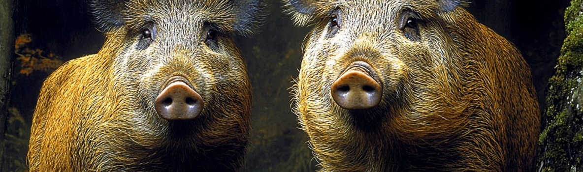 " À la lisière des sous-bois, deux sangliers. Ils paissent, tranquilles, dans une Gaule fantasmée, puis s’écroulent dans le fossé.
